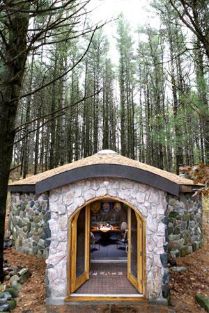 By the middle of September I had cut down all the trees that stood in the building area. They all agreed to be cut down with no objection. Except for one. The last tree, the largest of the pines to be cut, did object. When I asked it if I could cut it down, it said, "No". "Now what?" I thought to myself. I slowly became aware of this great spirit in the tree and I explained to it that to build the chamber I needed it to move to another tree in the forest. I waited many minutes until I became aware of a great wind starting at the base of the tree. With a whoosh sound this great tree spirit began to leave the top of the tree. It was huge and moved up the hill into another tree. We have been in regular communication ever since. After we cut the tree we counted its rings. It was 75 years old. All the trees cut down were used to finish the inside of the chamber.